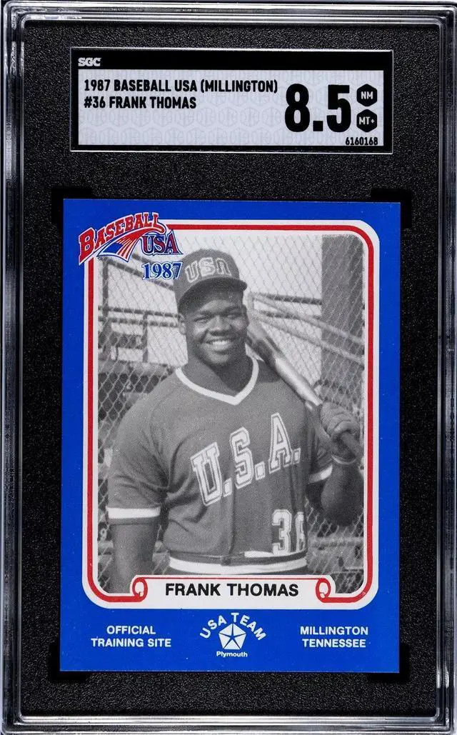 This is a Frank Thomas 1987 Baseball USA Pan-Am Games Blue Card #36- SGC Graded 8.5 NM-MT+ (White Sox/HOF). Image of actual item instock - as shown.