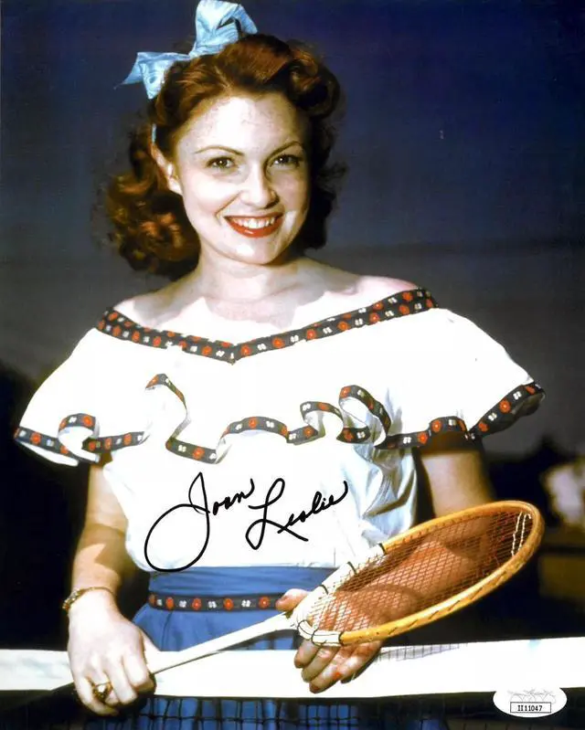 Joan Leslie was an American actress, dancer, and vaudevillian who, during the Hollywood Golden Age, appeared in such films as High Sierra, Sergeant York, and Yankee Doodle Dandy. Joan Leslie has hand signed this 8x10 Photo. JSA Authentication #II11047 and JSA Certificate of Authenticity.