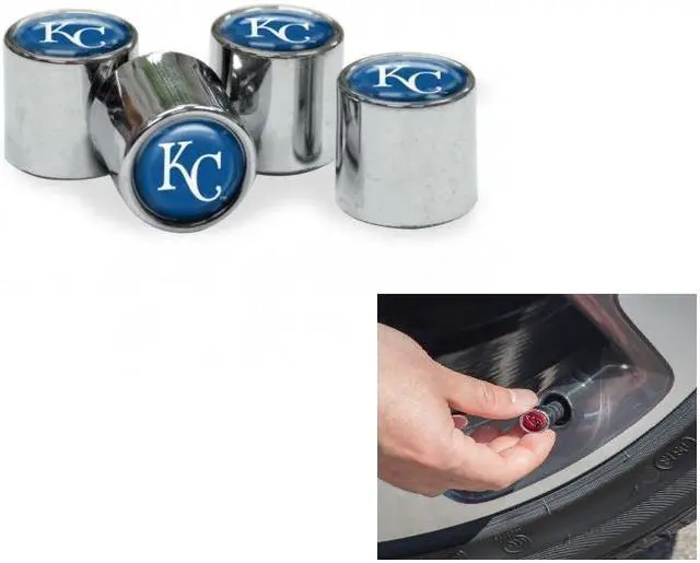 Officially Licensed Product. Fits standard size screw-on valve stems. Set of 4 plastic caps with chrome finish. Super sharp Vinyl-coated color graphics.