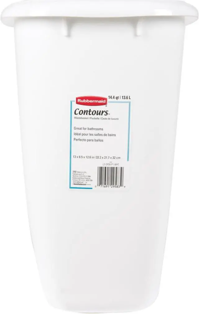 Attractive, contemporary design. Can be used in bathroom, bedroom or nursery. Durable material resists marring floors, walls or furniture. Easy to clean material allows sanitary housekeeping. 17" x 9" x 13.5". 14.4 quart. White.