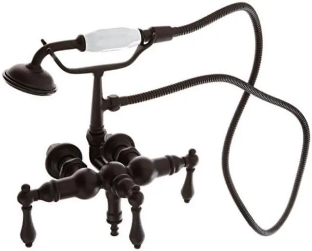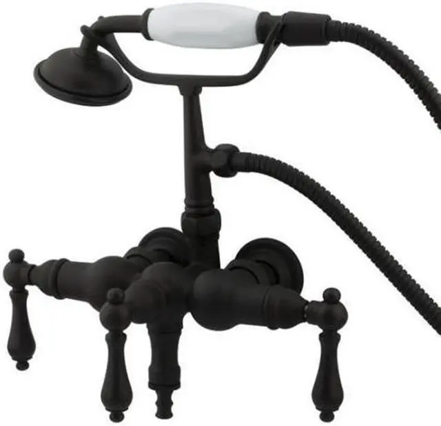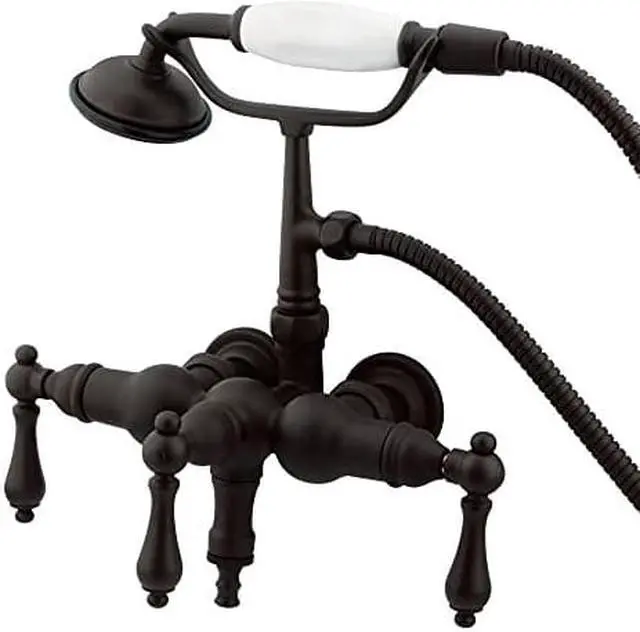 Kingston Brass Vintage 3-3/8" Wall Mount Clawfoot Tub Filler with Hand ShowerThis clawfoot tub filler is constructed of high quality brass to ensure reliability and durability. Its premier finish resists tarnishing and corrosion. All mounting hardware is included and standard US plumbing connections are used. 7-1/2" spout reach from riser centerTub wall mount or mount on freestanding supplies with 3-3/8" centers1/4-turn ceramic disk cartridgeVacuum breaker backflow preventionStandard US plumbing connectionsCollection/Series: VintageFinish: Oil Rubbed BronzeTheme: Classic
