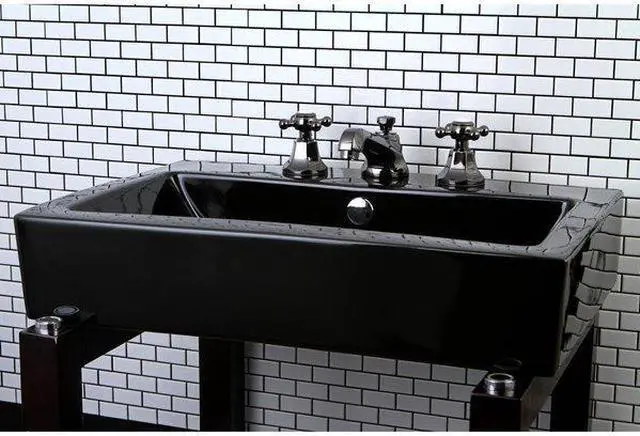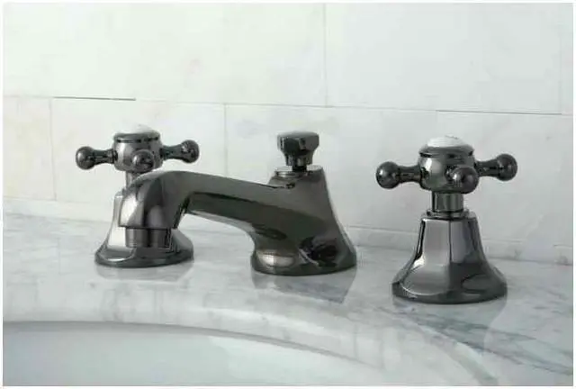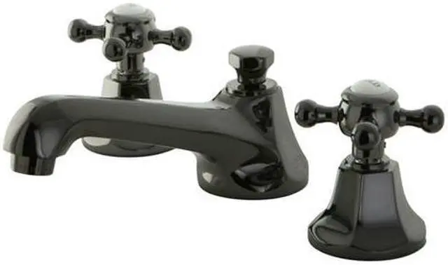 Inspired by the early 20th Century theme, the Water Onyx lavatory faucet blends old-style with the black nickel color to achieve a unique glamorous appeal. The multi-faceted spout and escutcheons blend well with the traditional classic handles resulting in a faucet that stands alone amongst other conventional faucets.