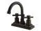Two Handle Deck Mount- 3 Hole Sink Application- 4 in. Centerset- 3 hole 4 in. center spread installation- Fabricated from solid brass material for durability and reliability- Premium color finish resist tarnishing and corrosion- 1/4 turn On/Off water control mechanism- 1/2 in. IPS male threaded shank inlets- Ceramic disc cartridge- 2.2 GPM (8.3 LPM) Max at 60 PSI- Integrated removable aerator-FeaturesDrip-free ceramic cartridge systemMatching brass pop-up drain included5 in. spout reach7-1/2 in. spout height3-1/2 in. spout clearanceHandle Type - DXFinish - Satin Nickel