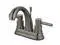 Kingston Brass Concord Two Handle 4" Centerset Lavatory Faucet with Brass Pop-upTwo Handle Deck Mount, 3 Hole Sink Application, 4" Centerset, 3 hole 4" center spread installation, Fabricated from solid brass material for durability and reliability, Premium color finish resist tarnishing and corrosion, 1/4 turn On/Off water control mechanism, 1/2" IPS male threaded shank inlets, Ceramic disc cartridge, 2.2 GPM (8.3 LPM) Max at 60 PSI, Integrated removable aerator, 5" spout reach from faucet body, 6" overall height.Matching brass pop-up drain included5" spout reach6" spout height4" spout clearanceCollection/Series: ConcordFinish: Satin NickelTheme: Contemporary / Modern
