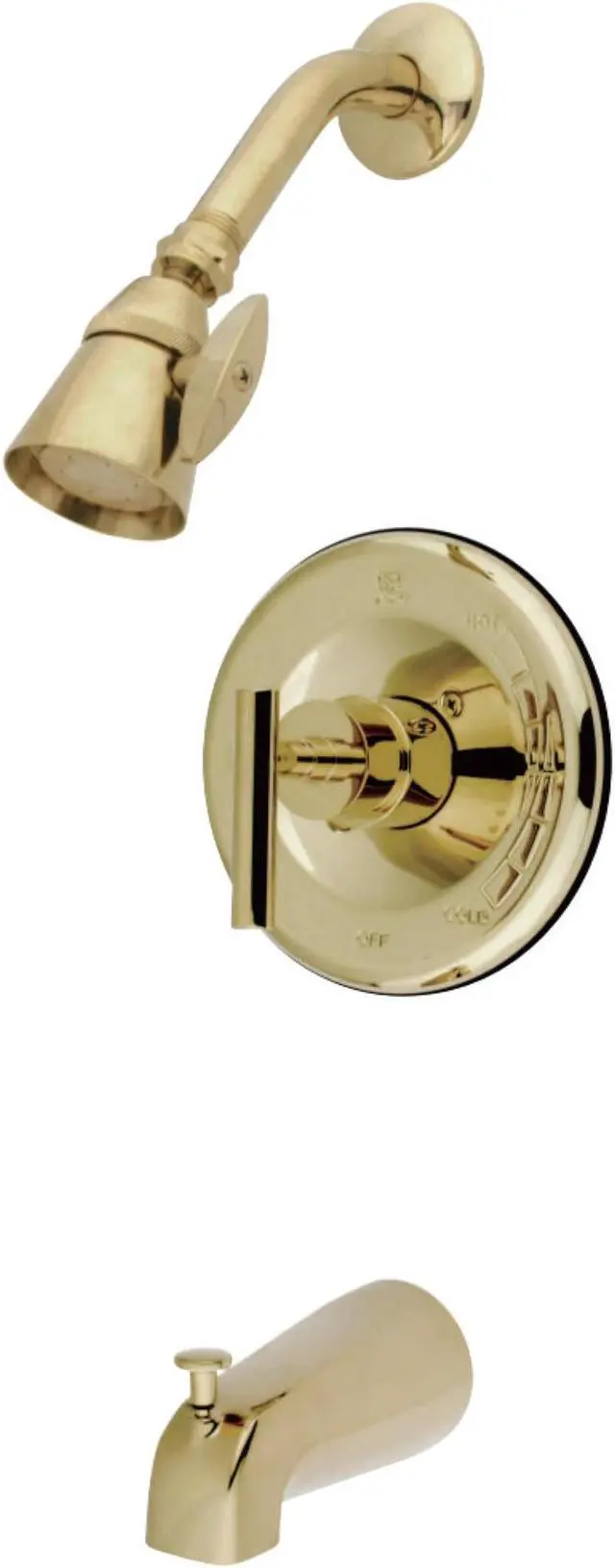 Single Handle Shower FaucetThe tub and shower faucet is made of solid brass construction for functionality and long-lasting use. Its premium color finish resists tarnishing and corrosion with a 2.5 GPM at 80 PSI on its shower head. Best known for its sleek avant-garde look--the EOD style exhibits sophistication and contemporary elegance, a design made to make your bathroom vibrant and extravagant.Meets ASME A112.18.1, ANSI/NSF 61 Sec. 9 code Designed for a lifetime performanceFine artistic craftsmanshipEasy installationCollection/Series: ManhattanFinish: Polished BrassTheme: Contemporary / Modern