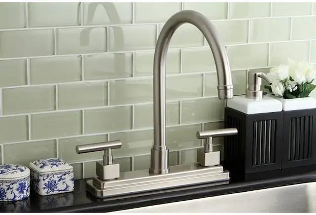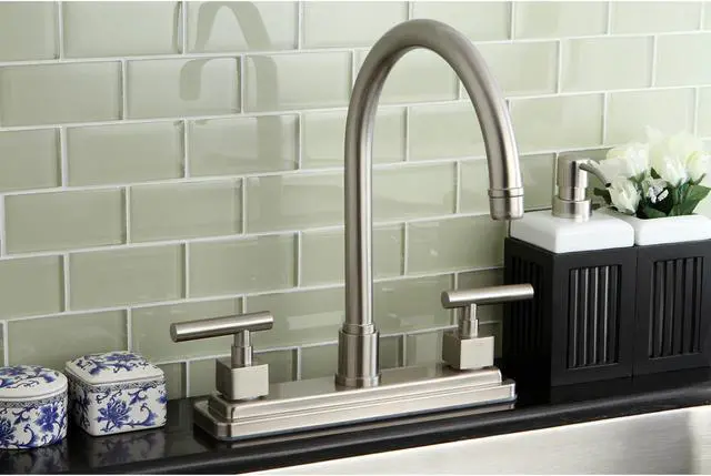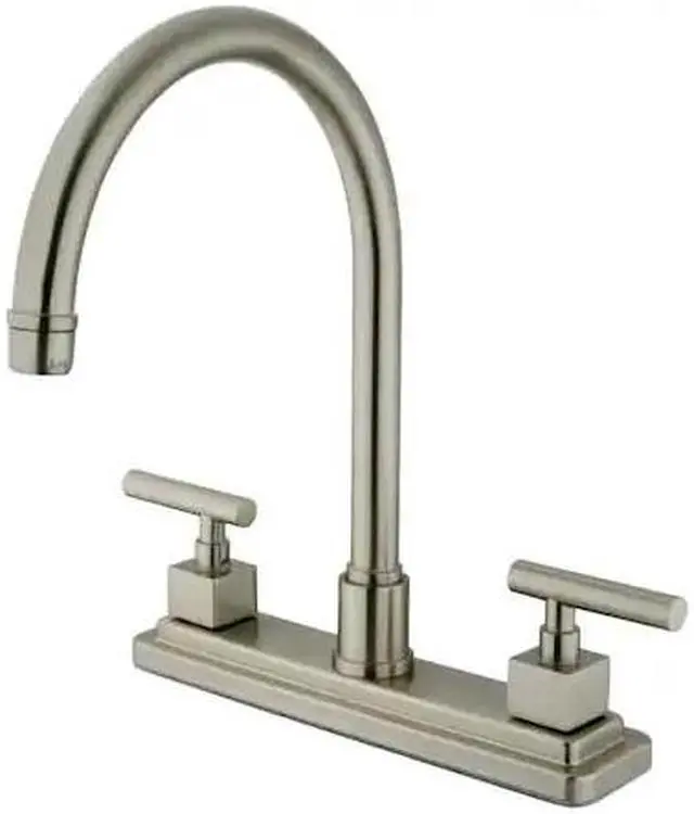 California Proposition 65: This product contains a chemical known to the State of California to cause birth defects or other reproductive harm. Draw eyes and attract admiration amongst guests with the contouring and rectangular configurations of this faucet. Easily adaptable to any style, centerset faucets are admired for their single unit and ease of installation. The brushed nickel finish will also provide a long lasting and warm touch to your kitchen ensemble. A sturdy brass construction and swivel abilities make for a reliant and long lasting fixture. Matching accessories are available for use.