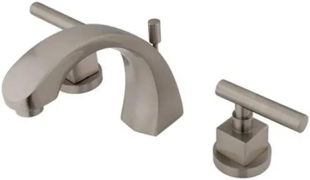 Kingston Brass Claremont Two Handle 8" to 16" Widespread Lavatory Faucet with Brass Pop-upTwo Handle Deck Mount, 3 Hole Sink Application, 8" to 16" Widespread, Fabricated from solid brass material for durability and reliability, Premium color finish resist tarnishing and corrosion, 1/4 turn On/Off water control mechanism, 1/2" IPS male threaded shank inlets, Ceramic disc cartridge, 2.2 GPM (8.3 LPM) Max at 60 PSI, Integrated removable aerator, 5" spout reach from faucet body, 5-1/2" overall height.Designed for a lifetime of performanceMeets ASME A112.18.1, ANSI/NSF 61 Sec. 9 codeAll mounting hardware includedMatching accessories availableCollection/Series: ClaremontFinish: Satin NickelTheme: Contemporary / Modern