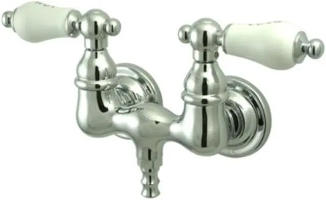 Kingston Brass Vintage 3-3/8" Wall Mount Clawfoot Tub Filler This clawfoot tub filler is constructed of high quality brass to ensure reliability and durability. Its premier finish resists tarnishing and corrosion. All mounting hardware is included and standard US plumbing connections are used. 2.4 GPM (9 LPM) Max @ 60 PSITub wall mount with 3-3/8" centers1/4-turn ceramic disk cartridge1-3/4" spout reach from wallStandard US plumbing connectionsCollection/Series: VintageFinish: Polished ChromeTheme: Classic