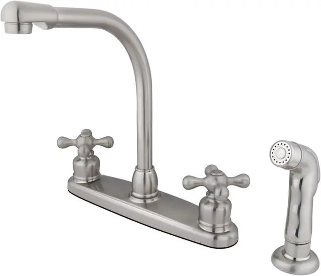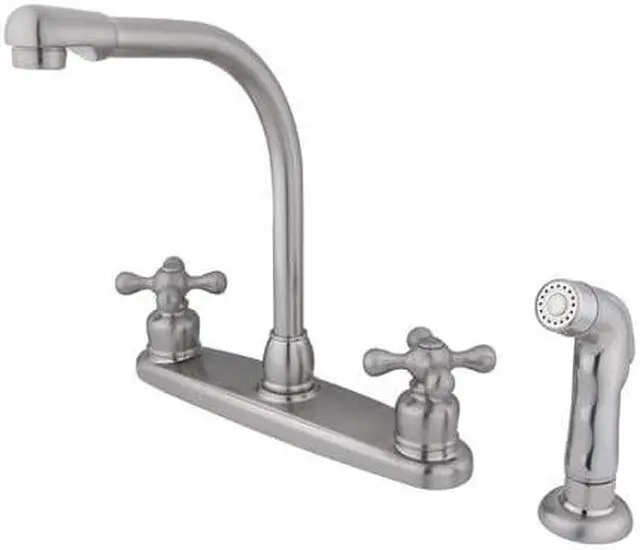 California Proposition 65: This product contains a chemical known to the State of California to cause birth defects or other reproductive harm. Returning to the nooks and curios of design from the Victorian Era, this faucet breathes modern excellence in performance while radiating vintage opulence. The brushed nickel finish will provide a long lasting touch to your kitchen. A sturdy brass construction and swivel abilities make for a reliant and long lasting fixture. Utilize the included side-sprayer for convenience in cleaning hard-to-reach areas.