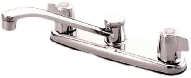 California Proposition 65: This product contains a chemical known to the State of California to cause birth defects or other reproductive harm. Seamlessly interweaving elements from both modern and classic design, this faucet embodies the finest design elements for a transitional styling, fitting any home decor. Easily adaptable to any style, centerset faucets are admired for their single unit and ease of installation. The polished chrome finish will add a glistening elegance to your kitchen ensemble. A sturdy brass construction and swivel abilities make for a reliant and long lasting fixture. Matching accessories are available for use.