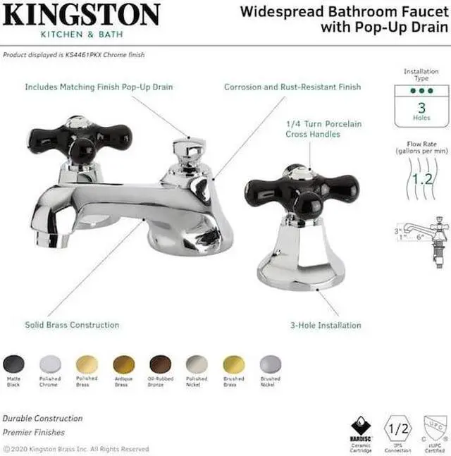 Kingston Brass KS4465PKX Metropolitan Onyx Widespread Lavatory Faucet With Black