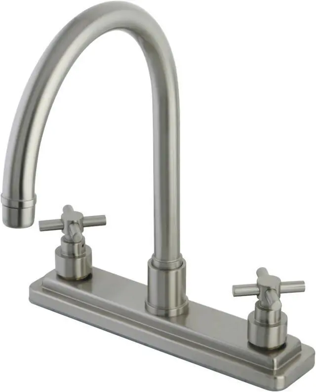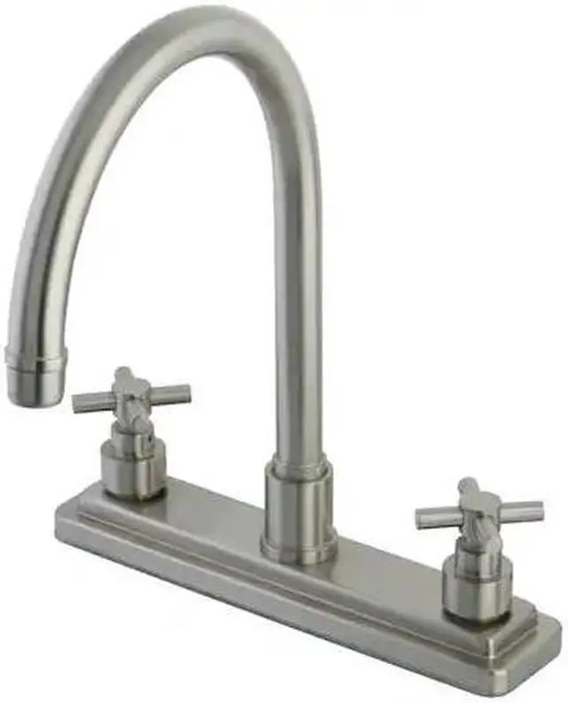 California Proposition 65: This product contains a chemical known to the State of California to cause birth defects or other reproductive harm. This faucet's modern features create a bold and edgy design in your kitchen. Easily adaptable to any style, centerset faucets are admired for their single unit and ease of installation. The brushed nickel finish will also provide a long lasting and warm touch to your kitchen ensemble. A sturdy brass construction and swivel abilities make for a reliant and long lasting fixture. Matching accessories are available for use.