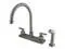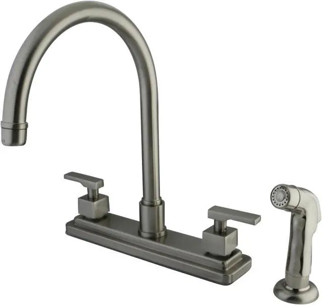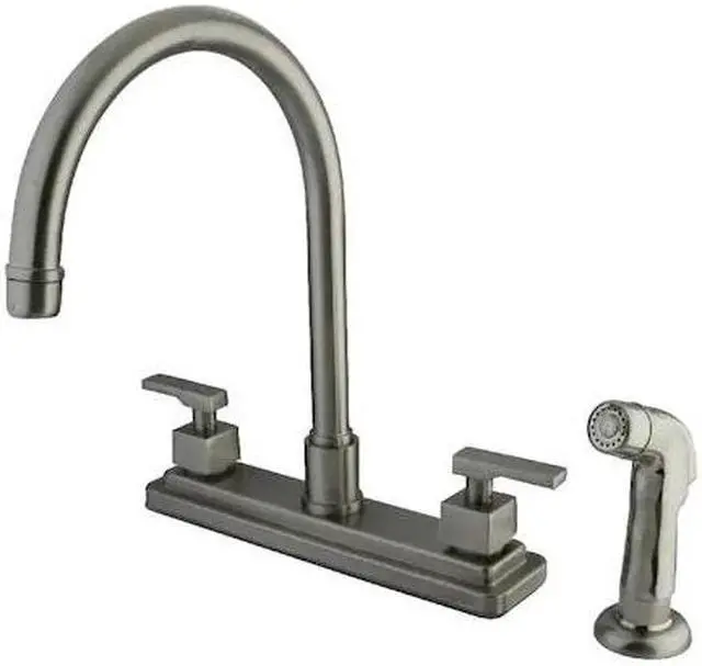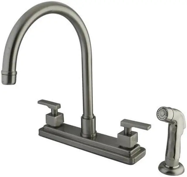 California Proposition 65: This product contains a chemical known to the State of California to cause birth defects or other reproductive harm. Adorn your kitchen with the transitional stylings and bold allure of this faucet. Easily adaptable to any style, centerset faucets are admired for their single unit and ease of installation. The brushed nickel finish will also provide a long lasting and warm touch to your kitchen ensemble. A sturdy brass construction and swivel abilities make for a reliant and long lasting fixture. Utilize the included matching finish side-sprayer for convenience in cleaning hard-to-reach areas.