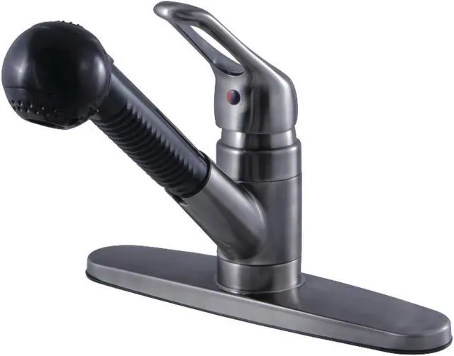 California Proposition 65: This product contains a chemical known to the State of California to cause birth defects or other reproductive harm. The exquisite design of this faucet tastefully flatters the elegant architecture of traditional homes with its fine detailing. An excellent options for smaller kitchens, the angled spout and extendable hose reach provide an optimized use of space. Minimalist design along with a classic style help you tackle your tough messes with the Wyndham Single-Handle Pull-Out Kitchen Faucet's two-function sprayer. Matching accessories are available for use.