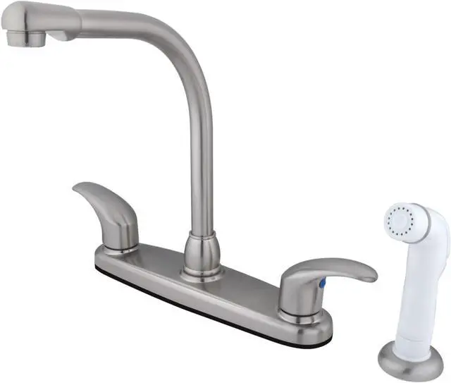 kingston brass fb718ll 7inch in spout reach legacy 8inch centerset kitchen faucet with white sprayer, brushed nickel