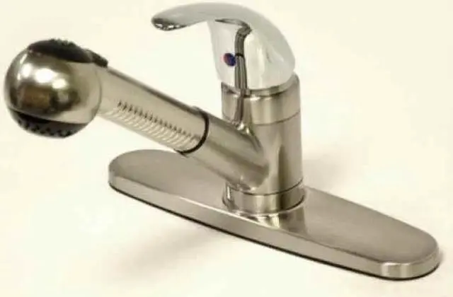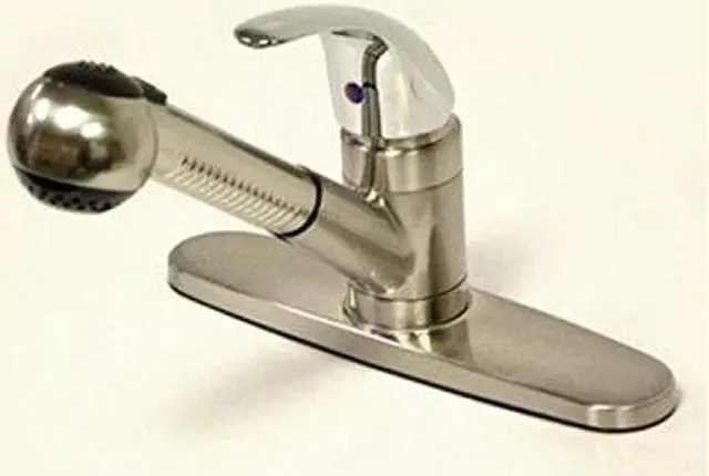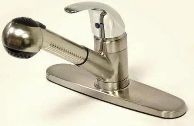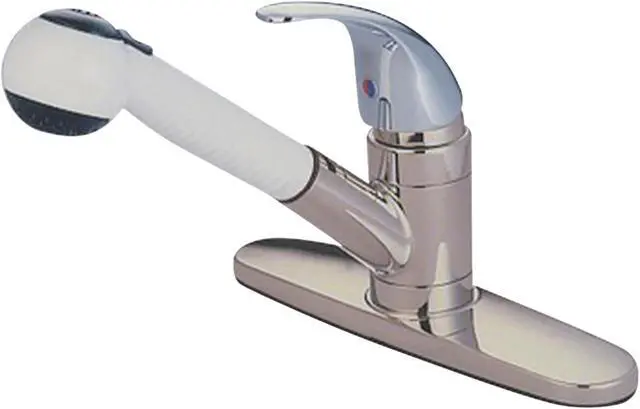 California Proposition 65: This product contains a chemical known to the State of California to cause birth defects or other reproductive harm. A twist on classic design is taken with this faucets curved features. An excellent options for smaller kitchens, the angled spout and extendable hose reach provide an optimized use of space. Minimalist design along with a classic style help you tackle your tough messes with the Legacy Single-Handle Pull-Out Kitchen Faucet's two-function sprayer. The brass construction and single handle also provide a sturdy, reliant, and easy to use fixture. Matching accessories are available for use.
