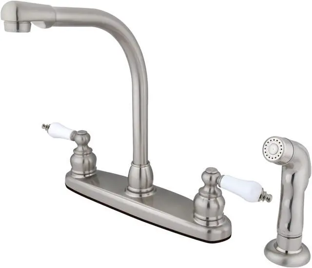 California Proposition 65: This product contains a chemical known to the State of California to cause birth defects or other reproductive harm. Returning to the nooks and curios of design from the Victorian Era, this faucet breathes modern excellence in performance while radiating vintage opulence. The brushed nickel finish will provide a long lasting touch to your kitchen. A sturdy brass construction and swivel abilities make for a reliant and long lasting fixture. Utilize the included side-sprayer for convenience in cleaning hard-to-reach areas.