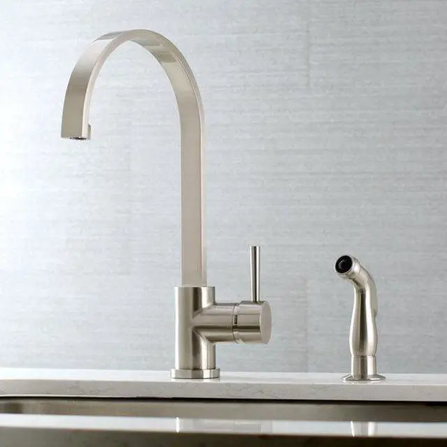 California Proposition 65: This product contains a chemical known to the State of California to cause birth defects or other reproductive harm. This faucet boasts bold, sleek design with its cylindrical styling. Easily adaptable to any kitchen, the Concord single-handle kitchen faucet is prized for its easy-to-use single-handle. This makes it the perfect fixture for multitasking as you can adjust temperature and volume in one swipe. Enjoy the strong and durable brass material and brushed nickel finish that will last for years to come. The included matching finish side-sprayer also adds convenience in cleaning hard-to-reach areas.