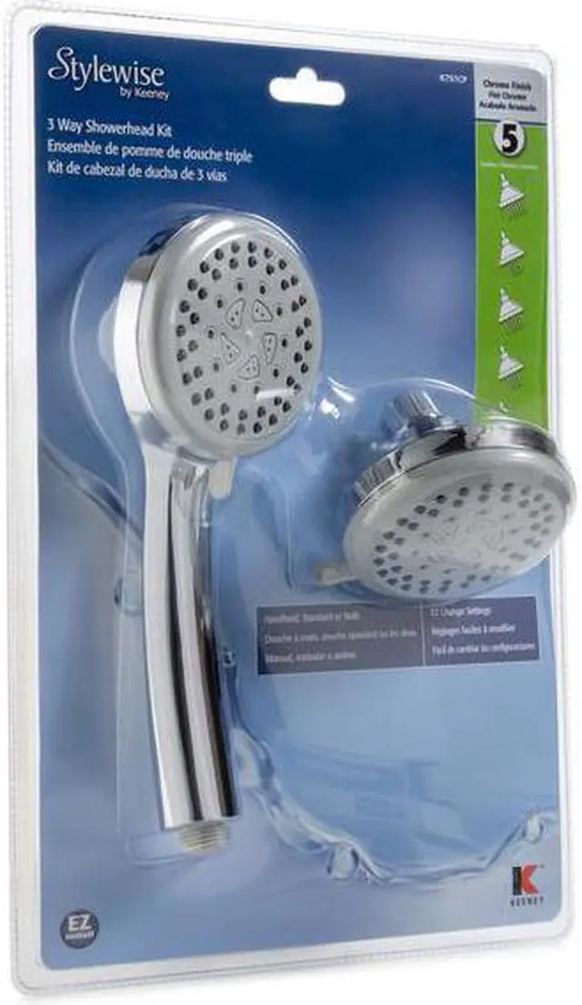 California Proposition 65: This product contains a chemical known to the State of California to cause birth defects or other reproductive harm. Stylewise by Keeney products are affordable luxury designed to effortlessly fit into your home, putting the finishing touch on any project. Whether for the kitchen or bathroom, the collection offers decorative accessories, such as toilet tank levers, fashion drain traps, and shower heads, which complement the hardware and finishes of existing faucets/appliances. This Keeney K751BN Stylewise 5 Function 3 Way Shower Head Kit has a chrome finish that gives an updated edge to any bathroom. It includes one handheld shower head, one standard shower head, one 60-in. flexible hose, and one 3-way diverter bracket. The multi-function 3.86 -in. round face provides consistent powerful spray performance with the ability to customize your desired water pressure. There are EZ clean rubber nozzles for hassle-free maintenance and a water saving flow rate of 1.8 gallons per minute. Stylewise by Keeney is function you need, with style you want.. This item has been restricted from sale in the following state (s): ['No']