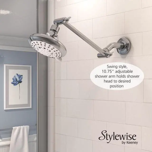 California Proposition 65: This product contains a chemical known to the State of California to cause birth defects or other reproductive harm. Stylewise by Keeney products are affordable luxury designed to effortlessly fit into your home, putting the finishing touch on any project. Whether for the kitchen or bathroom, the collection offers decorative accessories, such as toilet tank levers, fashion drain traps, and shower heads, which complement the hardware and finishes of existing faucets/appliances. This Keeney K730CP Stylewise 5 Function Adjustable Arm Shower Head has a chrome finish that gives an updated look to any bathroom. The 4.75 -in. round face provides consistent powerful spray performance with the ability to customize your desired water pressure. There are EZ clean rubber nozzles for hassle-free maintenance and a water saving flow rate of 1.8 gallons per minute. Stylewise by Keeney is function you need, with style you want.. This item has been restricted from sale in the following state (s): ['No']