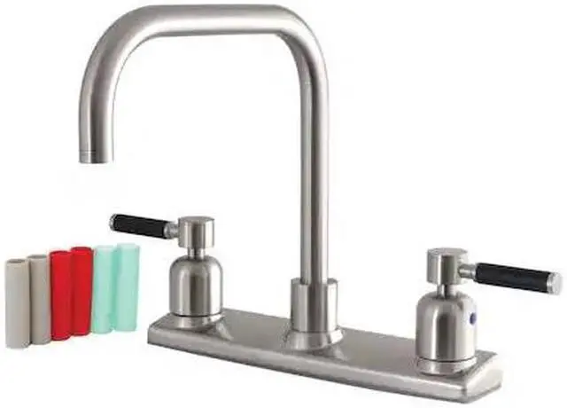 California Proposition 65: This product contains a chemical known to the State of California to cause birth defects or other reproductive harm. This faucet tastefully interweaves top-notch ergonomic design and the sheen of contemporary simplicity with its black silicone rubber coated handles and cylindrical facets. Easily adaptable to any style, centerset faucets are admired for their single unit and ease of installation. The brushed nickel finish will also provide a long lasting and warm touch to your kitchen ensemble. A sturdy brass construction and swivel abilities make for a reliant and long lasting fixture.