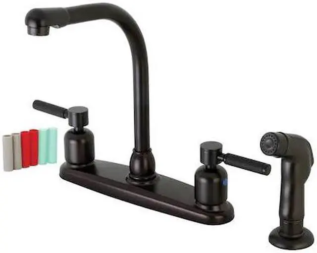 California Proposition 65: This product contains a chemical known to the State of California to cause birth defects or other reproductive harm. This faucet tastefully interweaves top-notch ergonomic design and the sheen of contemporary simplicity with its black silicone rubber coated handles and cylindrical facets. Easily adaptable to any style, centerset faucets are admired for their single unit and ease of installation. The oil rubbed bronze finish will also provide a long lasting and warm touch to your kitchen ensemble. Utilize the included matching finish side-sprayer for convenience in cleaning hard-to-reach areas.