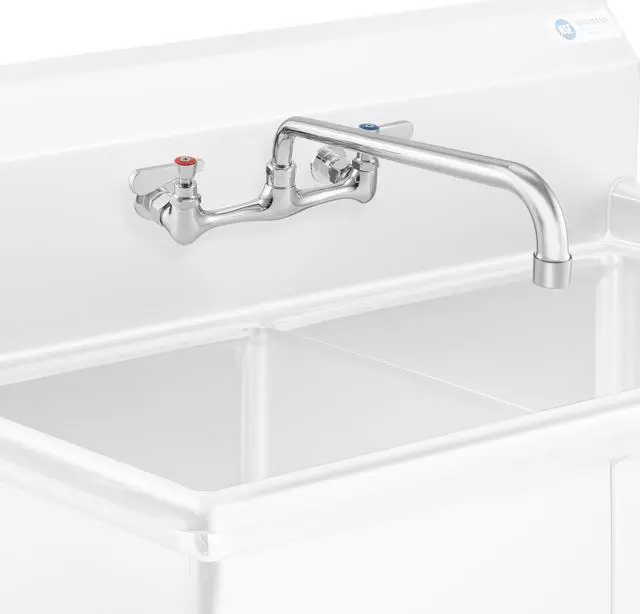 Gridmann's commercial sink faucet is built for durability and high performance. Featuring a chrome body with a polished finish, this wall-mounted faucet adds a modern look while resisting corrosion and tarnish. Designed for heavy-duty use, its brass construction ensures exceptional performance and reliability for your business or home. The faucet includes clearly labeled lever handles for easy and precise hot and cold water control. Whether you're upgrading a restaurant kitchen or an industrial workspace, this faucet provides reliable and durable functionality.