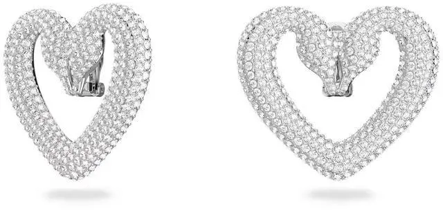 Swarovski Una Clip Earrings Heart - Large - White - Rhodium Plated