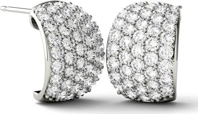 These gorgeous drop earrings showcase 1.8mm round cut Moissanite by Charles & Colvard gemstones. Beautifully crafted in rhodium-plated sterling silver and secured in a shared prong setting. The Total Diamond Equivalent Weight (DEW) is 1.80cttw (Actual Weight 1.70cttw).