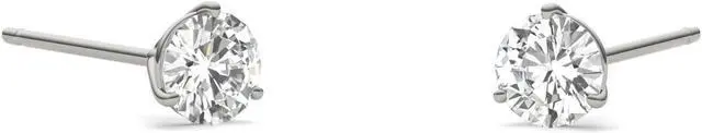 These beautiful Moissanite by Charles & Colvard stud earrings showcase 3.0mm round moissanite gemstones. Beautifully crafted in rhodium-plated 14K white gold and secured in a three-prong setting. Each 3.0mm moissanite gemstone has a Diamond Equivalent Weight (DEW) of 0.10ct (Actual Weight 0.09ct). The pair of earrings has a total Diamond Equivalent Weight (DEW) of 0.20cttw (Actual Weight 0.18cttw).