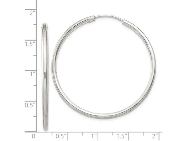 Large Hoop Earrings in Sterling Silver 1 1/2 Inch (2.0mm)