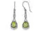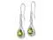 Pear shaped natural green peridot gemstones are pring set into rhodium plated sterling silver while sparkling synthetic cubic zirconias complete the look of these dangling earrings featuring the birthstone for August.