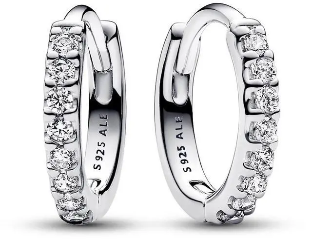 Choose delicate sparkle when you wear the Sparkling Huggie Hoop Earrings. An essential for every collection these sterling silver hoop earrings are set with a row of clear cubic zirconia. Versatile and classic these hoops make a winning gift or addition to your own look. Whether you wear them solo for subtle sparkle or stack them up your ear with other styles these staple hoop earrings will elevate your everyday.