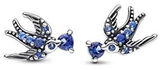 Say hello to spring with our Sparkling Swallow Stud Earrings. Symbolising hope for better days to come these sterling silver earrings feature a swallow detailed with microbeads grooved feather lines and Pave in varying shades of blue. Each carries a round brilliant-cut deep blue man-made crystal in its beak appearing to give it a sweet peck. Style these studs with other swallow-inspired jewellery for a look that channels the spirit of the season..