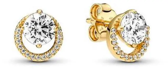 Make an elegant statement with the Sparkling Round Halo Stud Earrings. Hand-finished with 14k gold plating it features solitaire stones in an off-centered setting surrounded by a circle of pave. The placement of the stones creates a unique silhouette and gives these earrings a more modern look.