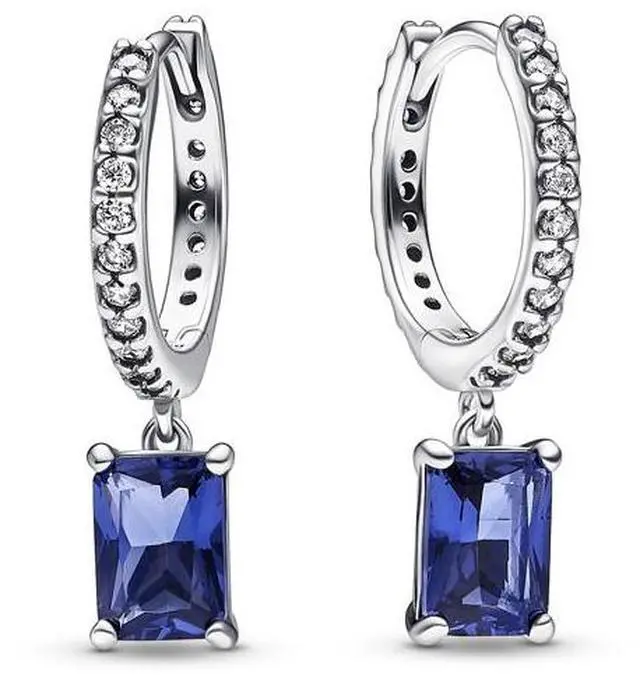 Do you find yourself drawn to both classic and contemporary styles at once Wear a set of sparkling hoop earrings that bring together the best of both worlds in a playful and daring way. Our sterling silver hoop earrings with rectangular radiant-cut princess blue man-made crystals capture timeless elegance combining vibrant and clear stones to create a modern and elevated style you can wear every day.