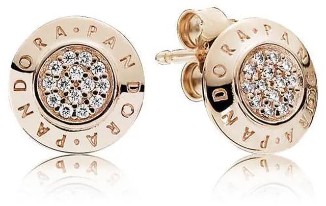 These PANDORA Rose stud earrings featuring a stylish logo and pave details add a glamorous and romantic touch to any wardrobe. Please note that the butterfly earring backs used are made from 14k rose gold plated sterling silver and not from the PANDORA Rose metal blend.