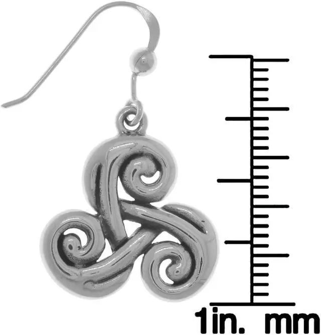 Crafted of the finest .925 Sterling Silver, this pair of earrings showcases the Celtic Triskele knot. The Triskele, also known as the Triskelion knot, symbolizes energy and forward progress. These highly polished earrings dangle from hook findings for easy styling. Inspired by the original artwork of artist Cari Buziak. Peter Stone© Jewelry Designs are exclusive and protected by Copyright Laws