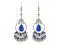 Handmade teardrop-shaped glass bead cat's eye silver metal hoop earrings with seed bead and alpaca silver metal dangles in blue, light blue turquoise, and gold color combination.
