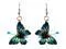 Three-dimensional butterfly durable plastic dangle earrings in turquoise blue, light yellow, and black color combination.