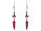 Handmade colored metal feather charm dangle earrings with chip stone in red color.