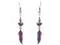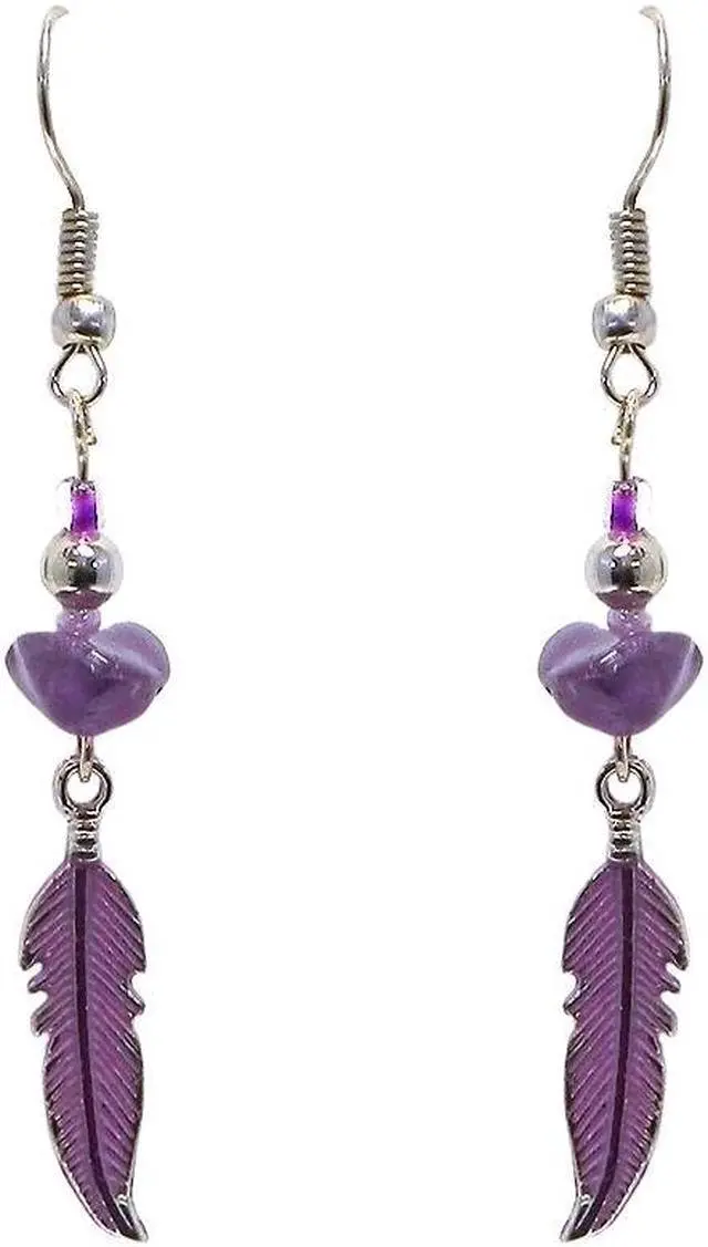 Handmade colored metal feather charm dangle earrings with chip stone in purple lavender color.