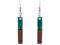 Handmade long rectangle-shaped fused glass dangle earrings with striped dual color pattern in teal green and brown color combination.