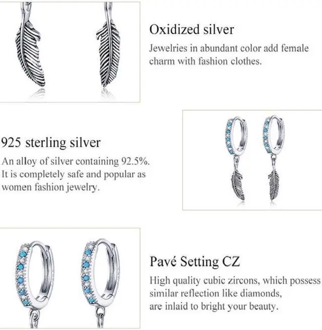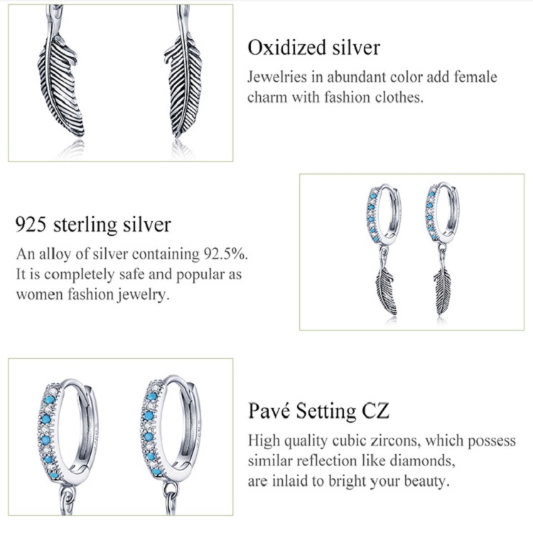 1. Material: S925, zircon 2. Treatment process: oxidation 3. Silver content: 92.5% or more 4. Use gender: female 5. Dimensions: height x width: 2.5x0.4 cm 6. Weight: about 1.9 grams 7. Packing: PP bag 8. Main stone: zircon