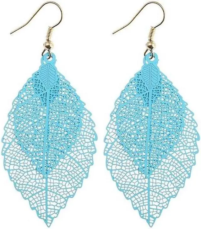 Double-layered Leaves Tassel Earrings Simple Retro Metal Leaf-ears Ornaments (Blue) Black
