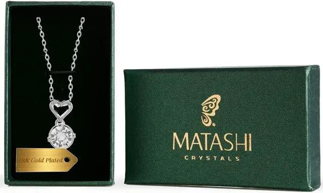 A slender white gold heart hangs from a gorgeous chain. Beneath it dangles a stunning crystal sparkling in the light; Crafted with quality materials like 18K White Gold and embellished with high quality Crystals means that this Necklace is a winner wherever you decide to wear it!