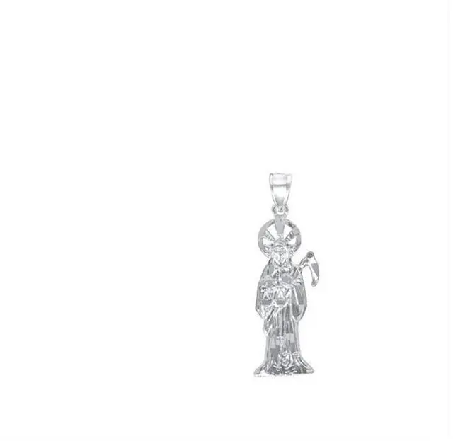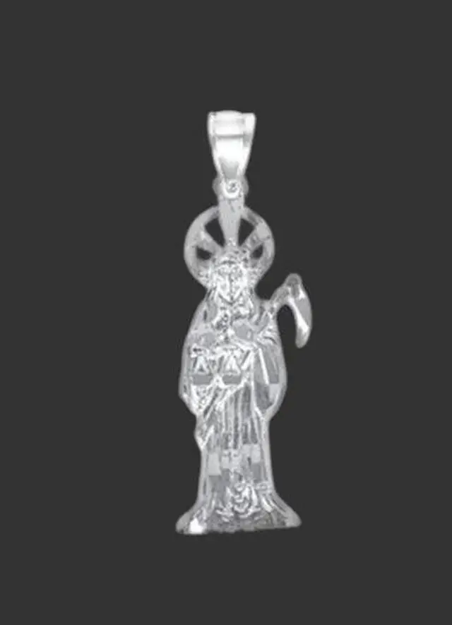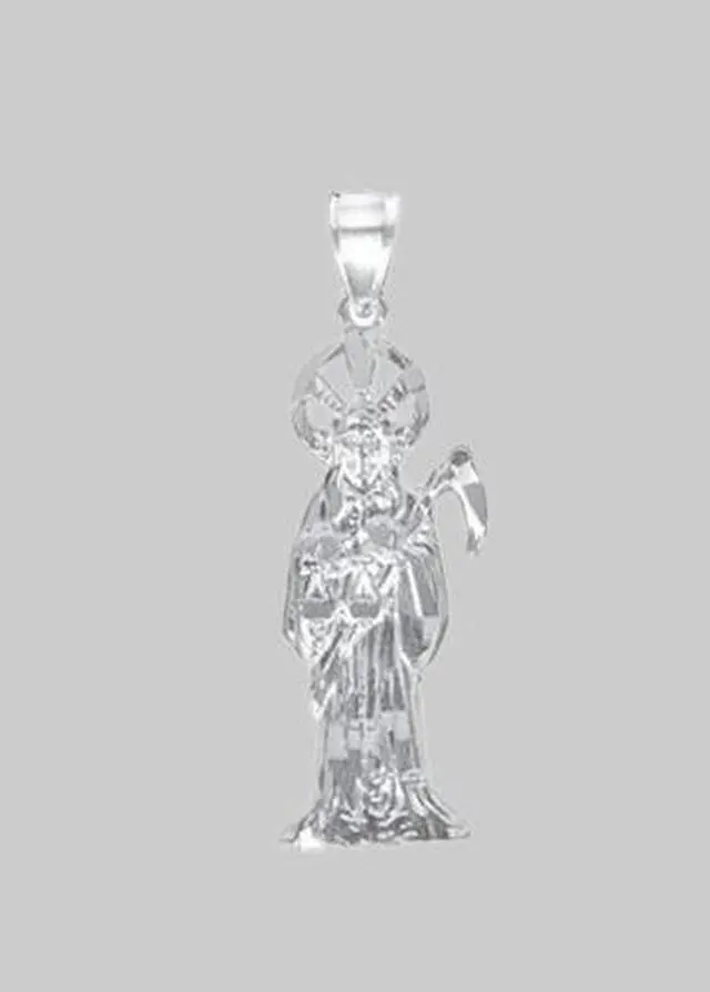 925 Sterling Silver Santa Muerte (Holy Death) Diamond Cut Pendant Necklace Made in Italy, Unisex, Hypoallergenic, 1" Tall, 2g