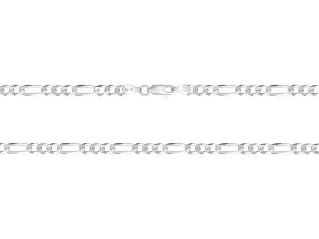 Crafted in Italy, this 20-inch flat Figaro link chain is a masterpiece of timeless design. It measures 4.7mm wide and weighs around 11 grams, offering a perfect blend of style and durability. The high-polished finish gleams brilliantly, making it a standout piece for any occasion.