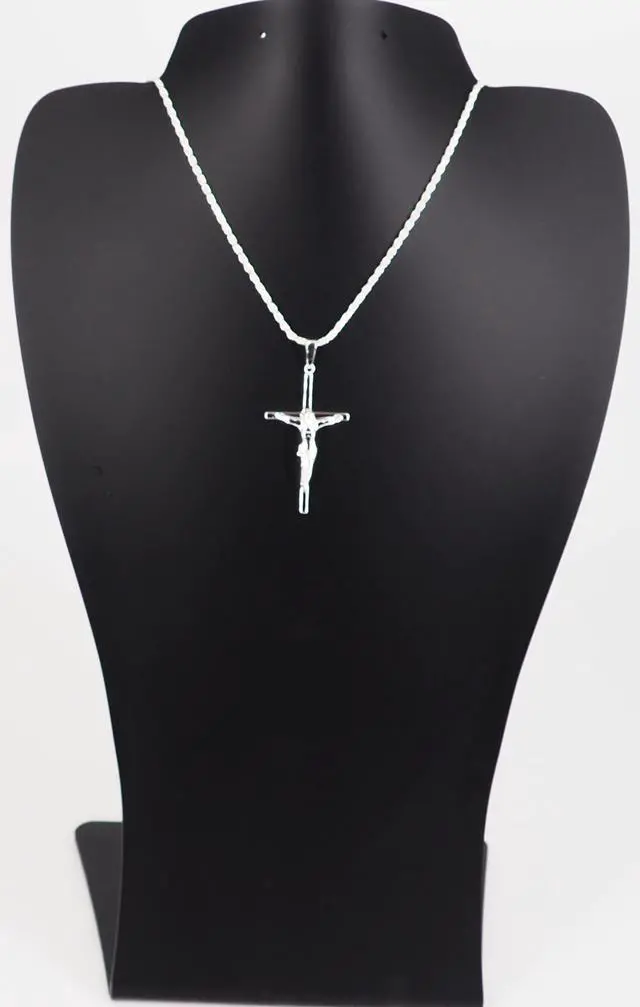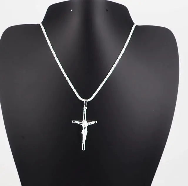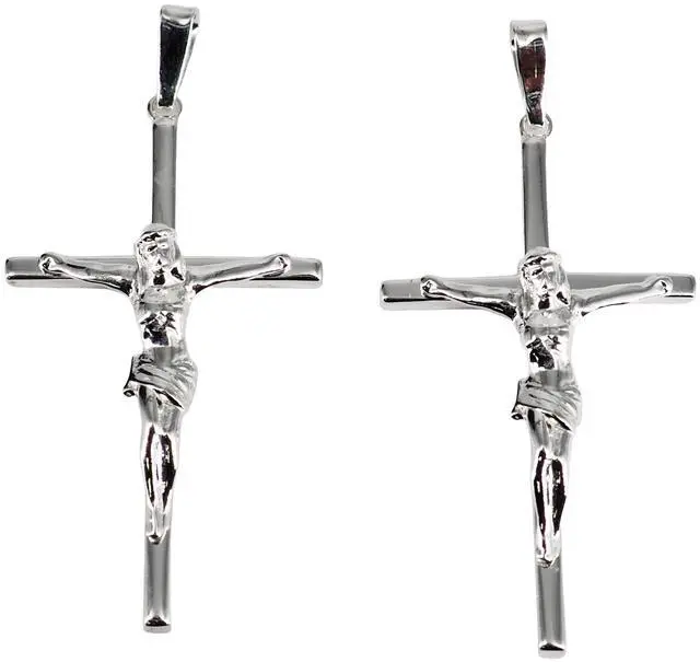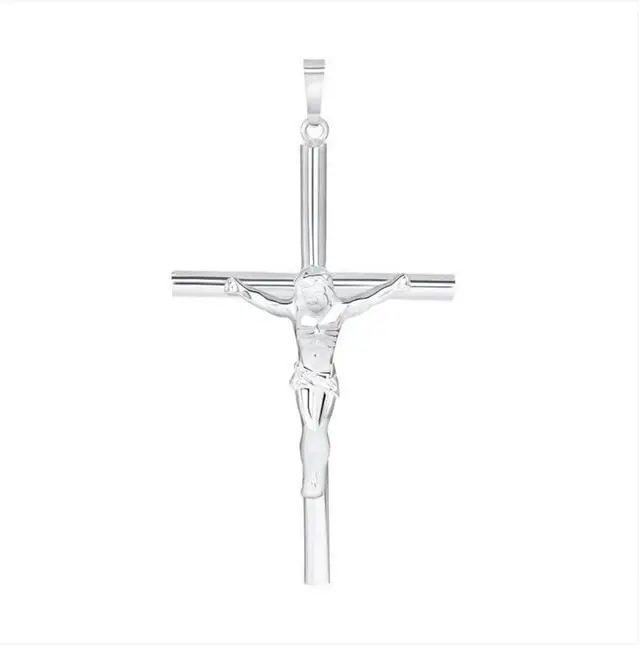 Made from genuine 925 sterling silver, it features a detailed Jesus cross with a sleek tube design. Hypoallergenic, nickel-free, and anti-tarnish, this pendant ensures lasting shine and comfort.