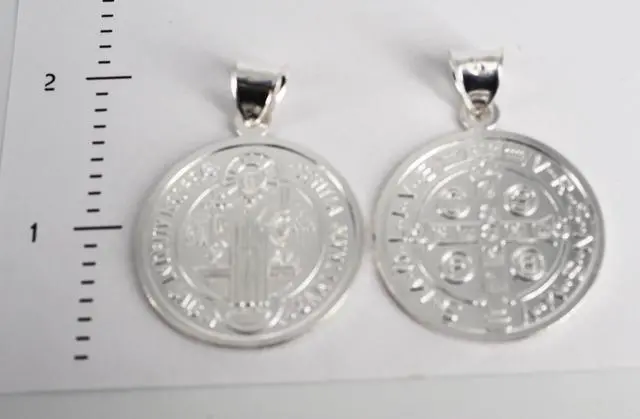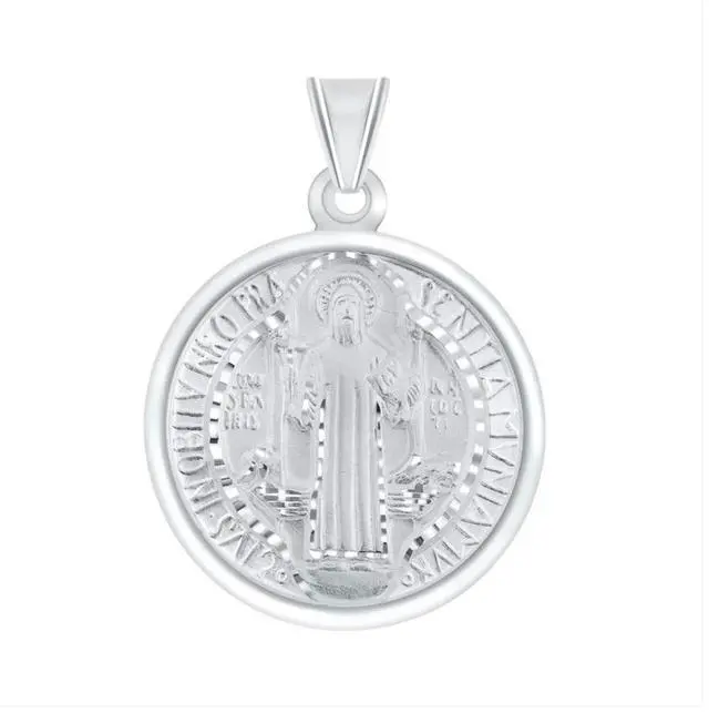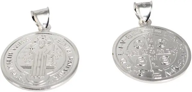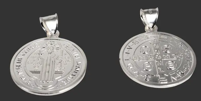 Honor your faith and protection with this MST Sterling Silver 925 St. Benedict (San Benito) Double Sided Diamond Cut Medal Pendant.